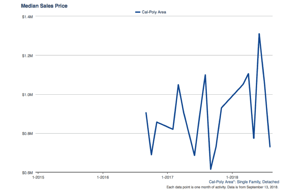 While Cal-Poly has seen a decrease in the cost of homes in recent months, the price of a detached single family home has increased year over year by 4.9%. Homes now sell for an average of $915,000. Prices for townhomes in the area have increased 2% from August 2017, making the median cost of a townhome $500,000.